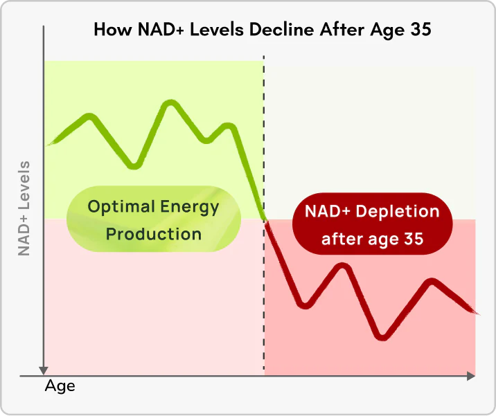 A: NAD+ decline is a well-studied biological process linked to aging, energy metabolism, and cellular repair. Rather than promising unrealistic outcomes, this formula focuses on supporting a foundational pathway involved in how cells produce energy and maintain resilience as we age.